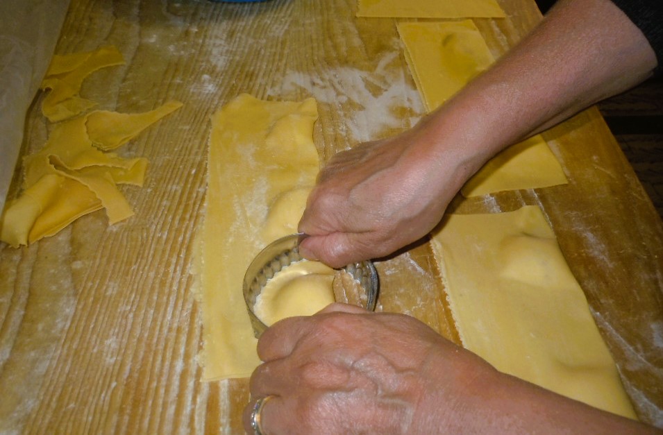 Dal New Jersey a Lumarzo… La genesi di questo volume è anzitutto un focus sulla ricetta dei ravioli preparati dalla bisnonna dell’autrice. Laura ignora le proprie ascendenze liguri, e non parla una parola di italiano. Ma è una scrittrice di enogastronomia. Si stupisce che la ricetta di famiglia includa nel ripieno un cream cheese (formaggio spalmabile) e carne non cotta. Un viaggio in Europa non era tout court nei suoi progetti ma, sulle tracce della memoria, giunge finalmente in Liguria dove esplora territori, tradizioni, cucine e ricette, ricostruendo nel contempo la propria identità. Il puzzle si ricompone grazie – ovviamente – alla pasta fatta in casa, i cui segreti vengono “svelati” a Laura da un’anziana signora, ravioli compresi. Ed ecco la spiegazione del “mistero”: la bisnonna sostituì l’introvabile prescinsêua con il cream cheese e – forse – apprese da una rosticceria cinese di Hoboken (New Jersey) l’abitudine di non pre-cuocere il ripieno dei dumplings, i fagottini made in Oriente.